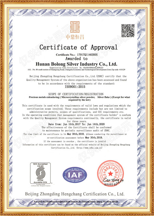波隆銀業(yè)客戶遍布江蘇、浙江、上海、安徽、河北、廣東、陜西等地。公司擁有微銀粉和片狀銀粉兩大類、八個(gè)品種,可滿足薄膜開關(guān)、柔性線路、防靜電包裝、太陽能背銀、導(dǎo)電膠、觸摸屏、ICC集成電路、電容器、電極、壓敏陶瓷等方面銀漿需要。