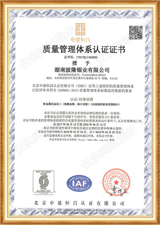 湖南波隆銀業(yè)有限公司是湖南波隆集團(tuán)股份有限公司的全資子公司,成立于2016年4月15日,注冊(cè)資金1000萬。集白銀類產(chǎn)品的研發(fā)、銷售于一體,年?duì)I收1.22億元。2017年6月底,湖南波隆銀業(yè)有限公司順利通過了ISO9001質(zhì)量體系管理認(rèn)證,并獲得了相關(guān)文件證書,這標(biāo)志著波隆銀業(yè)逐步邁入規(guī)范化、標(biāo)準(zhǔn)化的現(xiàn)代企業(yè)管理軌道。