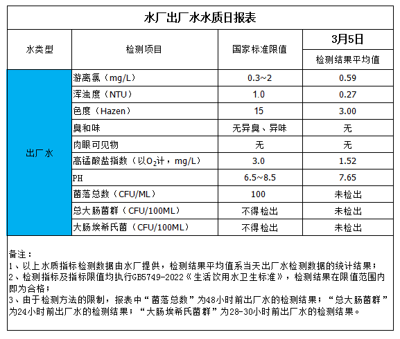 出廠水水質(zhì)日?qǐng)?bào)表(2026-3-5)