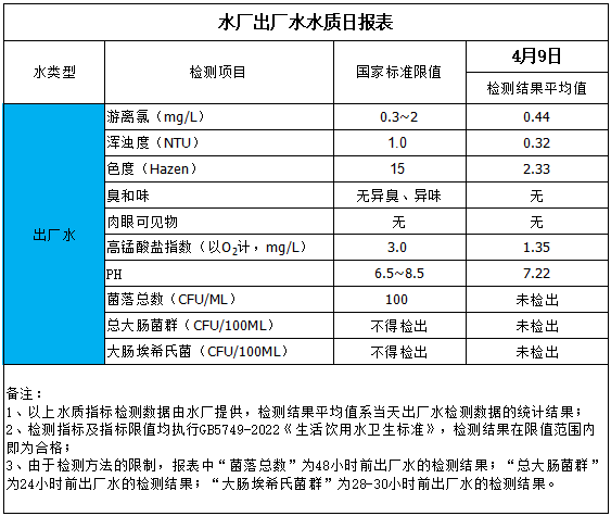 出廠水水質(zhì)日報表(2026-4-9)