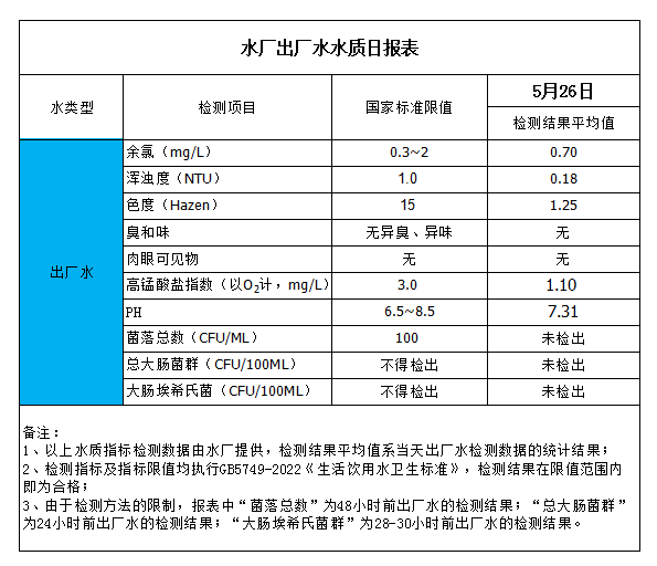 水廠出廠水水質日報表(2023-5-26)