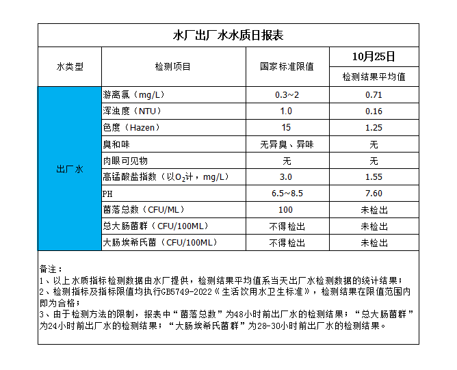 水廠出廠水水質日報表(2023-10-25)