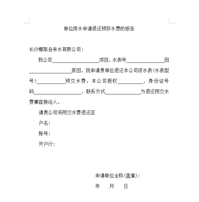 點(diǎn)擊下載單位用水申請退還預(yù)存水費(fèi)的報(bào)告